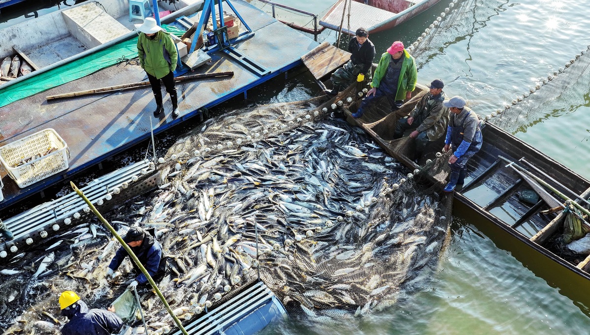 Зимният риболовен сезон носи пресен улов в езерото Liuye в Хунан