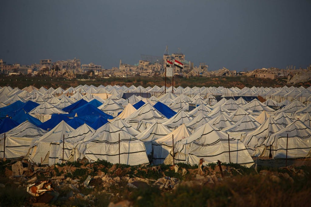 В събота са издигнати палатки за настаняване на разселени палестински семейства в квартала ал-Захара в ивицата Газа. Снимка: AFPВ събота са издигнати палатки за настаняване на разселени палестински семейства в квартала ал-Захара в ивицата Газа. Снимка: AFP