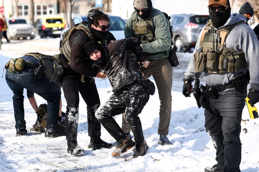 Федерални агенти задържат протестиращ в Минеаполис на 3 февруари 2026 г. Снимка: AFP