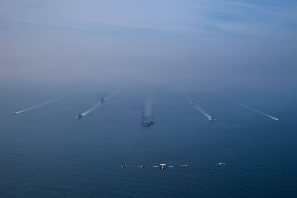 USS Abraham Lincoln води своята ударна група по време на фотоучение в Арабско море. Снимка: ВМС на САЩ чрез РойтерсUSS Abraham Lincoln води своята ударна група по време на фотоучение в Арабско море. Снимка: ВМС на САЩ чрез Ройтерс