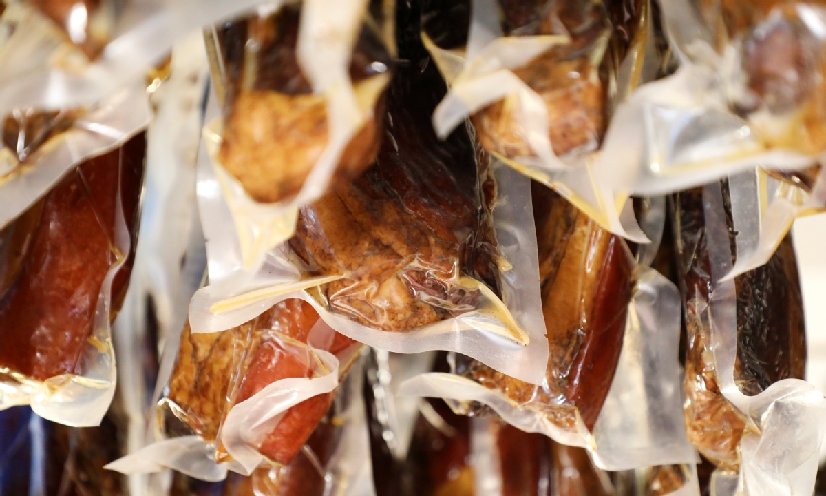 Пушено с кипарис свинско месо се реди в магазините в Гуейджоу за Пролетния фестивал